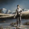 Du siehst eine klare Komposition aus Figur und Landschaft. Im Vordergrund liegt flaches Wasser, durchzogen von Schilf und einzelnen Steinen. Der junge Mann steht zentral und hält einen Eimer, in dem mehrere runde, helle Elemente liegen. Seine nach unten geführte Hand setzt einen präzisen Moment innerhalb der ruhigen Weite. Die zurückhaltende Farbwelt aus Blau, Grau und sandigen Tönen lässt Himmel, Berge und Schilfflächen leise zusammenwirken. Silent-Art von Jörg Hornisch steht dabei für Moderne Kunst mit reduzierter Präsenz.