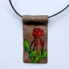 Handgefertigter Bronze-Anhänger (2 x 4 cm), bemalt und lackiert, mit floralem Motiv. Wird mit Lederband geliefert. Ein echtes Einzelstück.